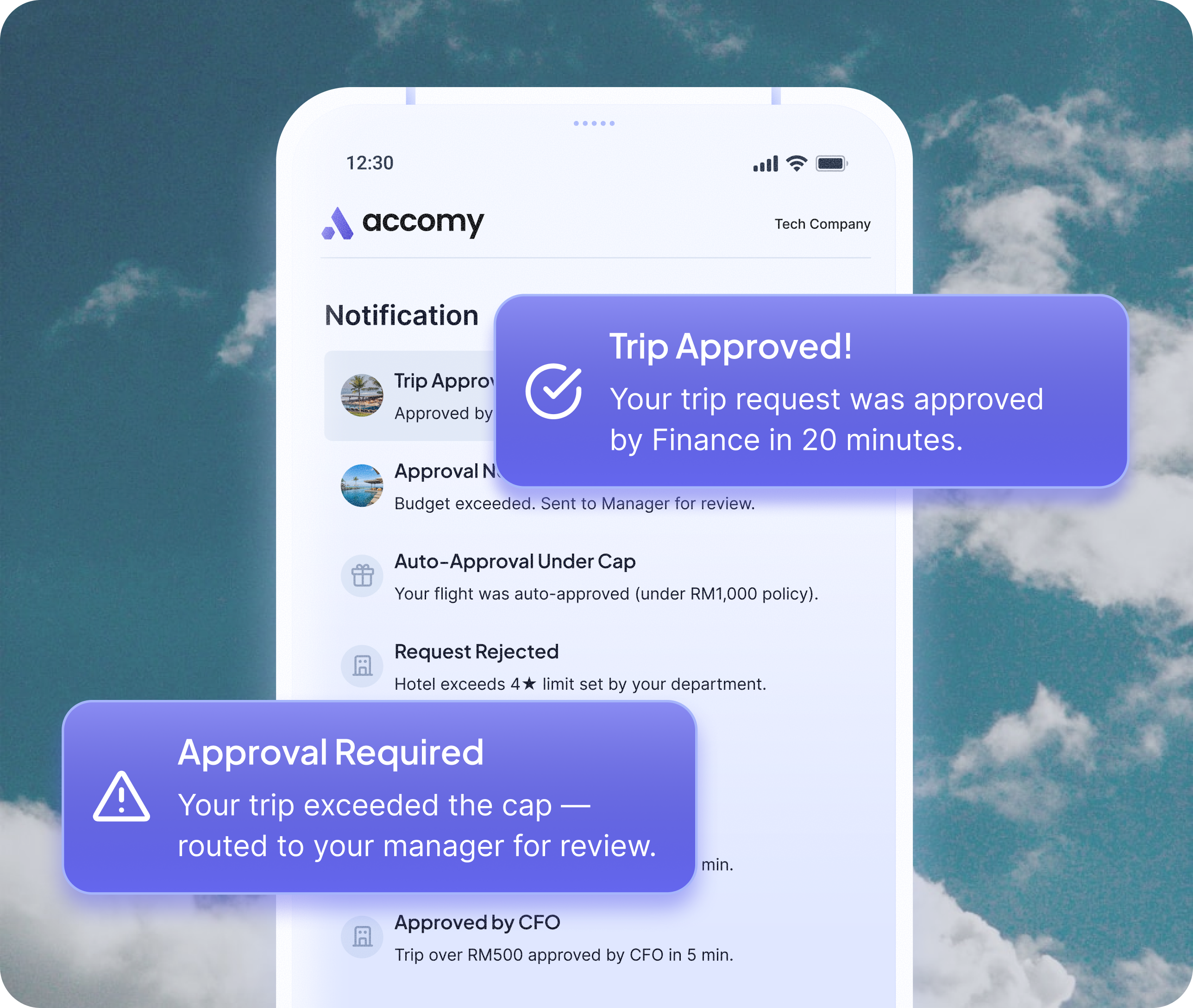 Auto-filters bookings and routes trips for instant, policy-compliant approval.