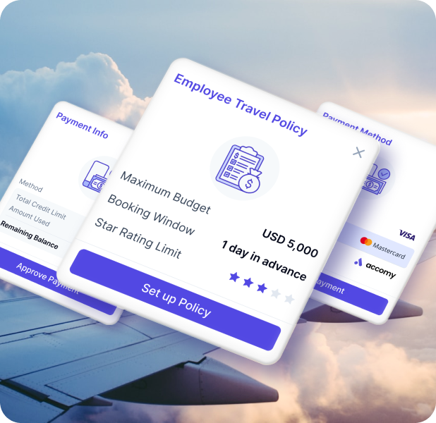Our full travel policy engine supports layered approval flows, compliance rules, and customizable booking controls by region, team, or individual.