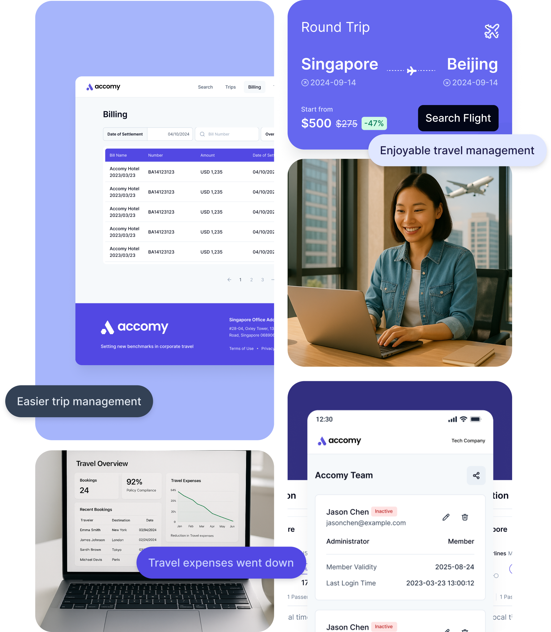 "內建政策合規預訂、自動化審批與即時支出透明化,整合於每一次航班與酒店搜尋之中。 以您的財務、營運團隊與員工需求為核心而設計。"